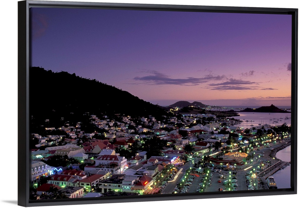 <p>Caribbean, French West Indies, St. Martin.Marigot; town seen from Ft. Louis; evening</p>