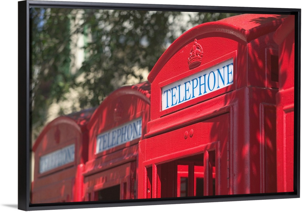 <p>Caribbean, GRENADA, St. George's.St. George's Harbor, The Carenage.Red English-style Telephone Booths</p>