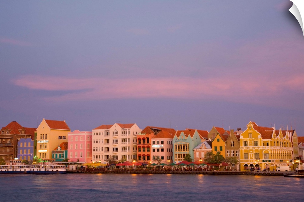 <p>Caribbean, Netherland Antilles, Curacao, Willemstad, Punda quarter. Colorful businesses with traditional colonial architecture in the Dutch style along Willemstad Harbor. The city center of Willemstad is a UNESCO World Heritage Site.</p>