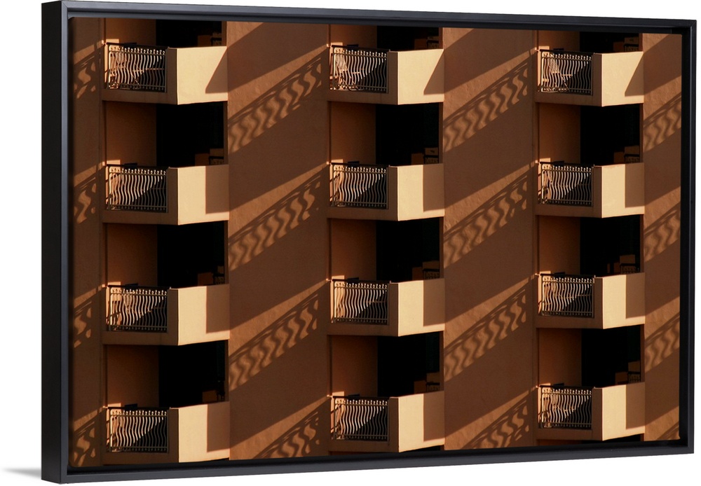 <p>Caribbean Sea, Lesser Antilles, Aruba, Oranjestad. Sunrise on building and balconies casts repetitive shadows. Credit as: Wendy Kaveney / Jaynes Gallery/ DanitaDelimont.com.</p>
