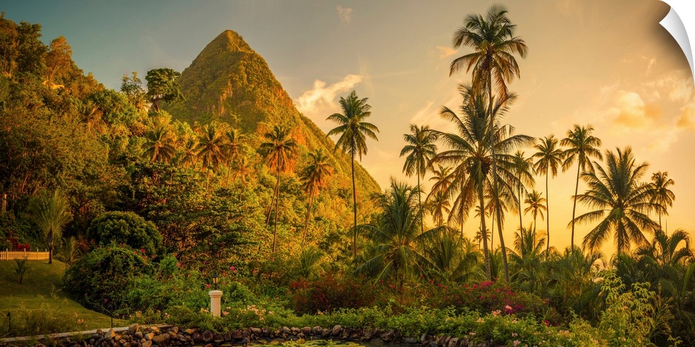 <p>Caribbean, St Lucia, Soufriere, Sugar Beach Resort, formerly Jalousie Plantation Resort and Gros Piton (UNESCO World Heritage Site)</p>