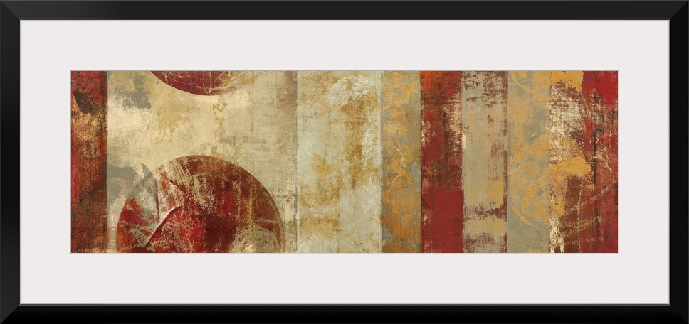 <p>Contemporary artwork of shapes with heavy distressing throughout.</p>