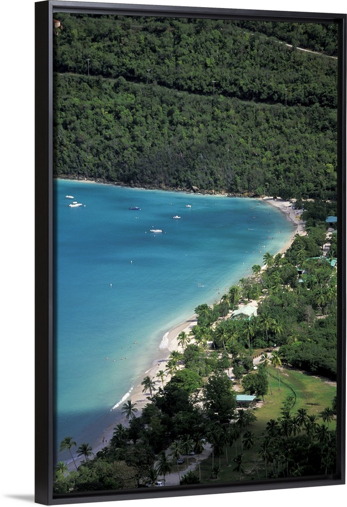 <p>Caribbean, US Virgin Islands, St. Thomas, Magens Bay. Aerial view of bay and beach</p>