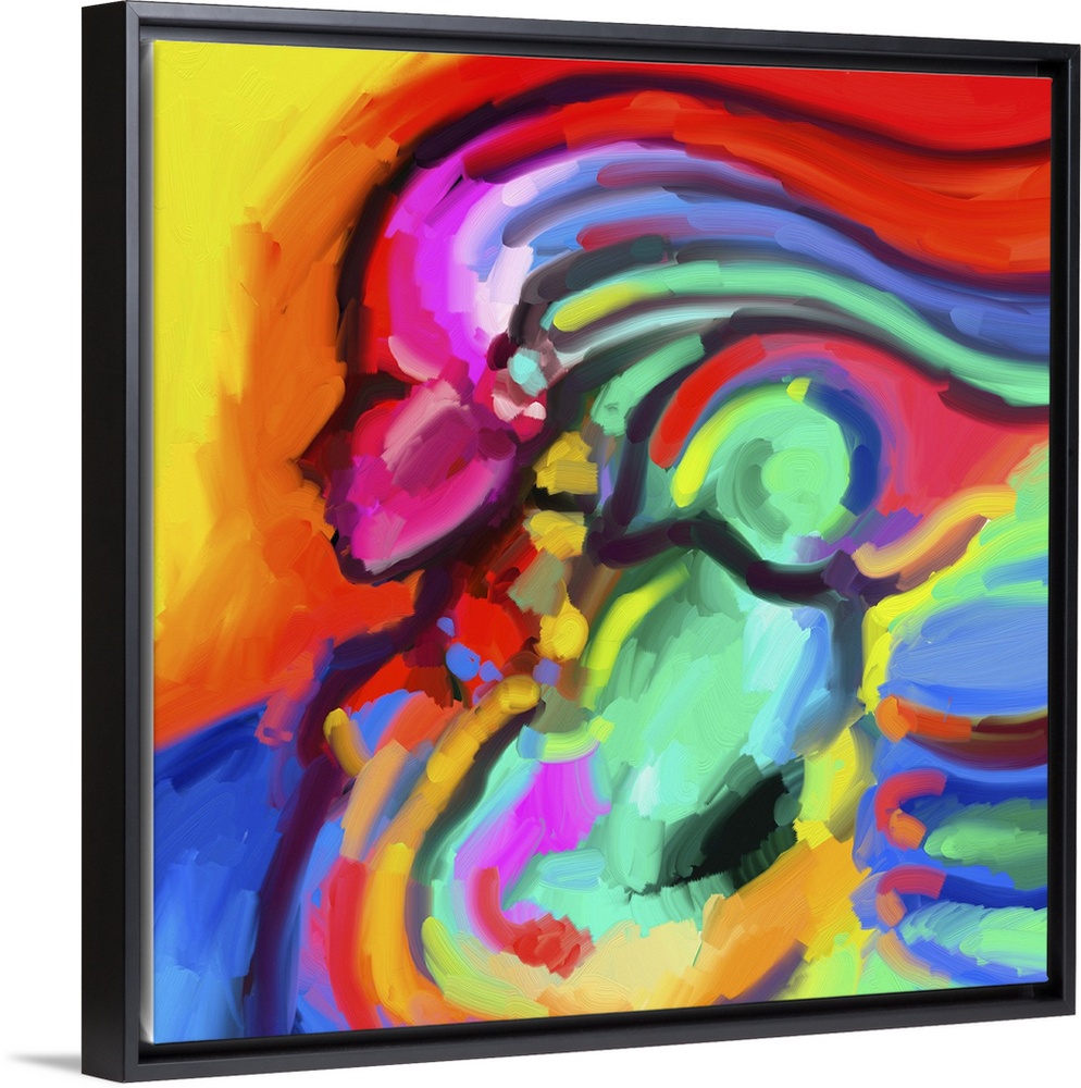 <p>A contemporary piece of artwork of a female figure in profile surrounded by color.</p>