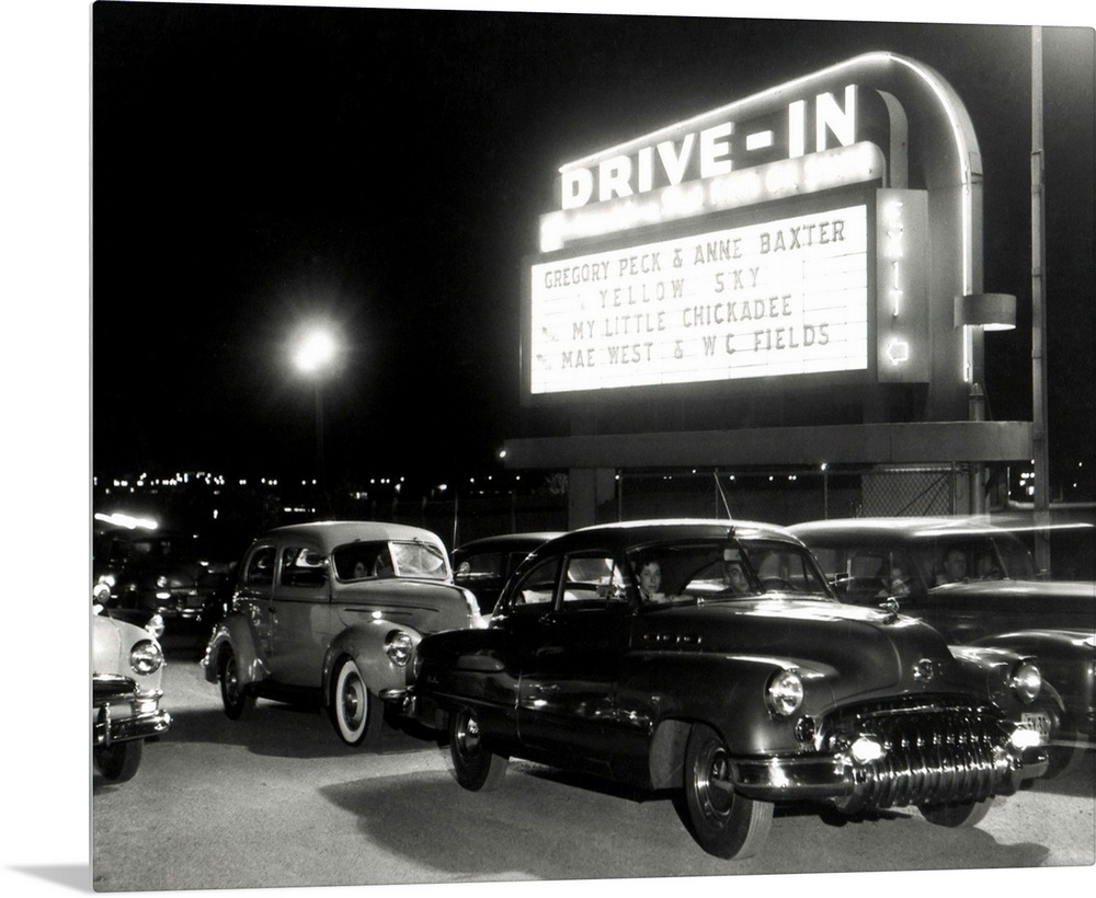<p>Cars at the Whitestone Bridge Drive-In Theater which opened in August 1949. The Drive-In Theater could accommodate 1,200 cars and was open 8 months of the year. It was showing a double feature, YELLOW SKY and MY LITTLE CHICKADEE.</p>