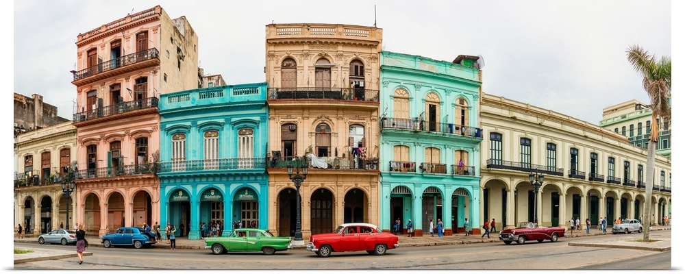 <p>Cars in front of colorful houses, Havana, Cuba</p>