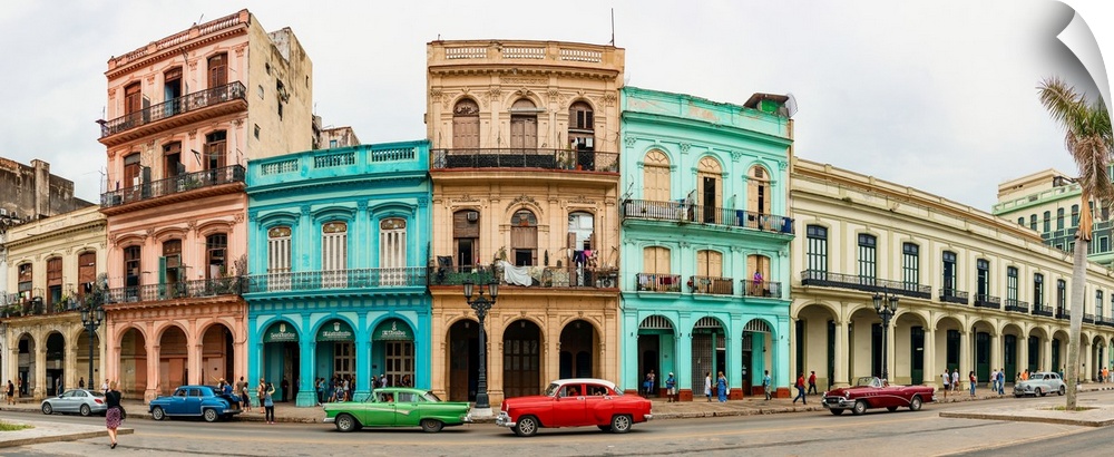 <p>Cars in front of colorful houses, Havana, Cuba</p>