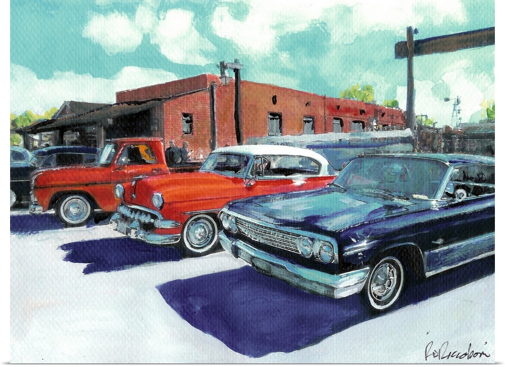 <p>Classic Cars on San Diego Avenue, painting by RD Riccoboni.</p>