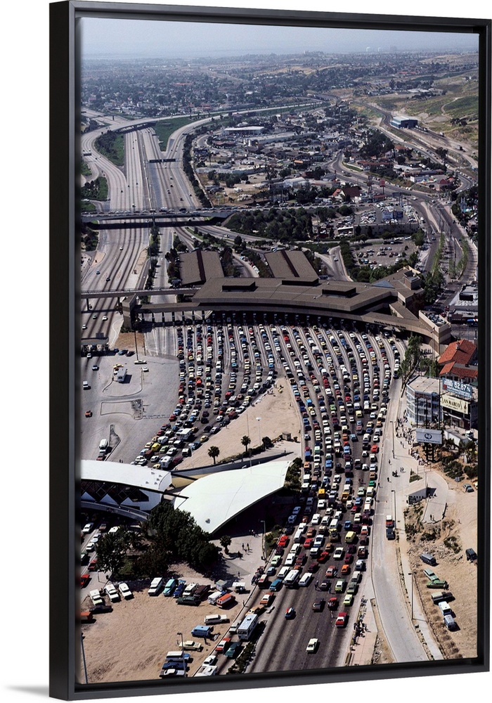 <p>Cars line up at the border inspection station at San Ysidro, California, to cross between the United States and Baja California, Mexico. | Location: Border of Baja California, Mexico and San Ysidro, California, USA.</p>