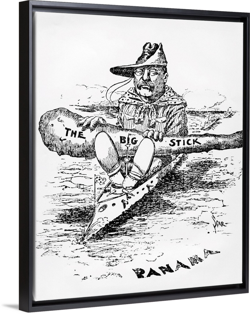 <p>Theodore Roosevelt steams down to Panama carrying his Big Stick.</p>
