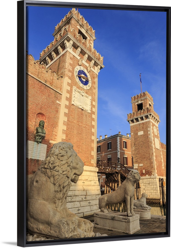 <p>Carved lions, Arsenale entrance, in winter afternoon sun, Castello, Venice, Veneto, Italy</p>