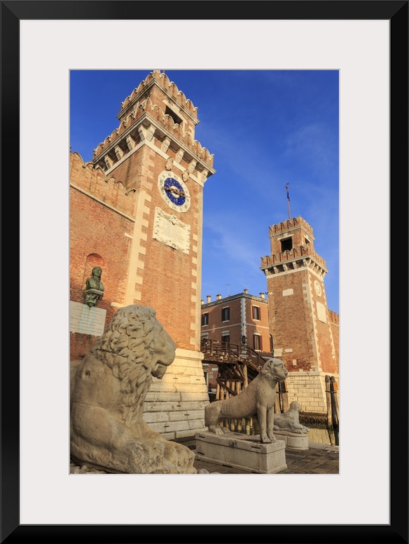 <p>Carved lions, Arsenale entrance, in winter afternoon sun, Castello, Venice, Veneto, Italy</p>