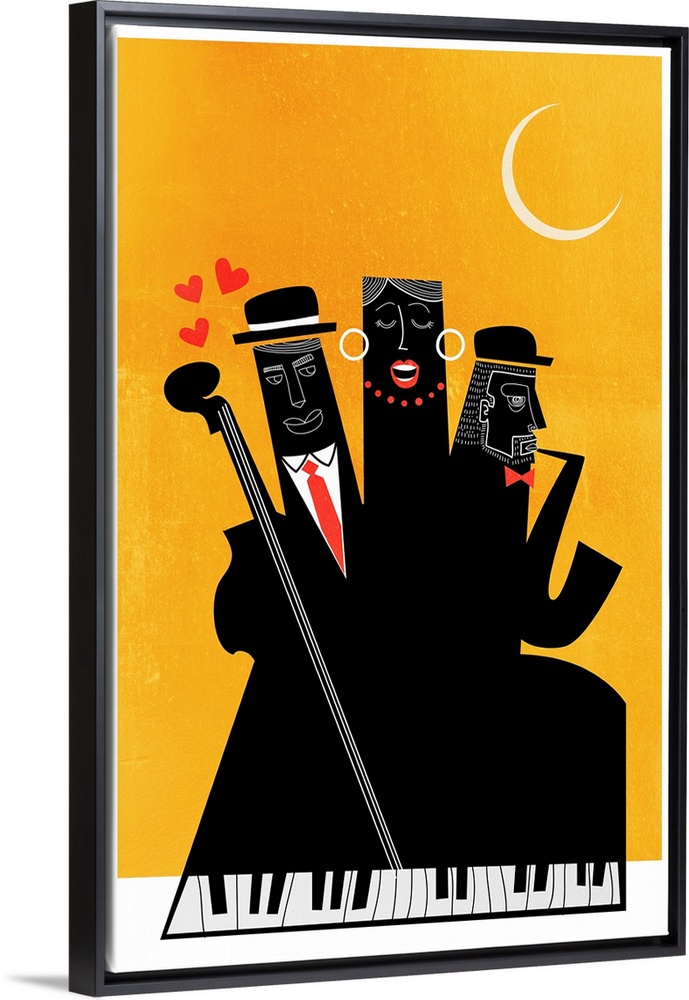 Art Art by Decor Style Mid-Century Modern Entryway Art Mid-Century Entryway Contemporary Art Graphic Art Kubistika Art Music, Movies and TV Music People Figurative Yellow Wall Art