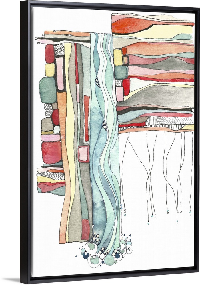 <p>Contemporary abstract watercolor painting in layers of bright colors.</p>