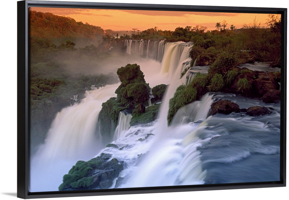 <p>This wall art is a landscape photograph taken from above of an enormous South American waterfall at sunset.</p>