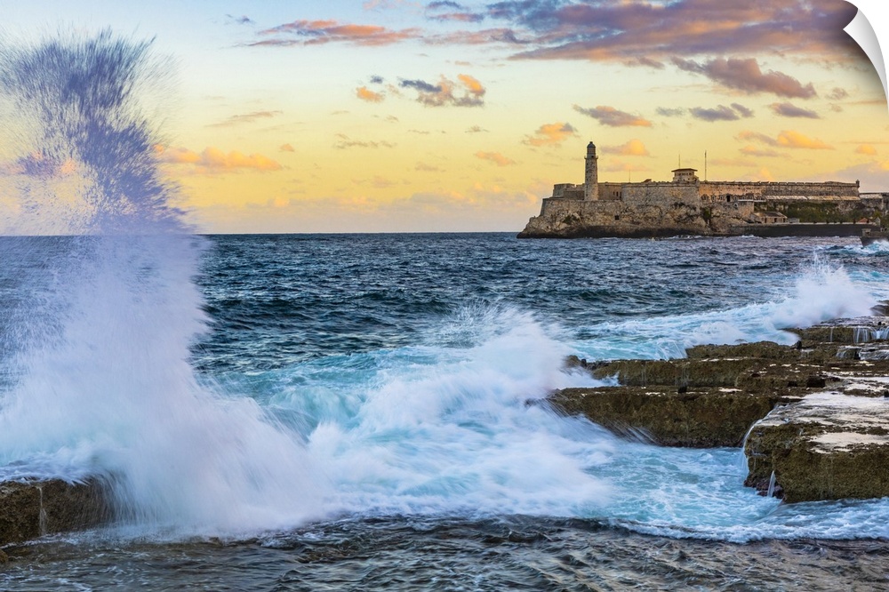 <p>Castillo De Los Tres Reyes Del Morro (otherwise known as El Morro) at sunrise from The Malecon, La Habana Province, Havana, Cuba</p>