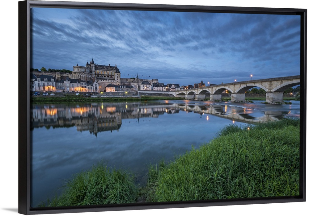 <p>Castle and bridge at blue hour, Amboise, Indre-et-Loire, Loire Valley, Centre, France</p>
