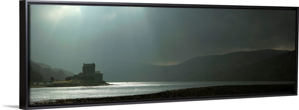 <p>Eilean Donan Castle in Green storm light with crepuscular God's Rays casting silver light on the loch near the Isle of Skye, Scotland.</p>
