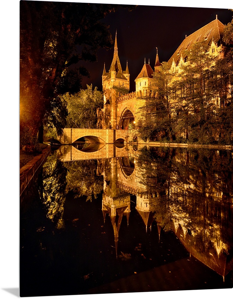 <p>Reflections of a Castle in a Lake at Night, Budapest, Hungary.</p>