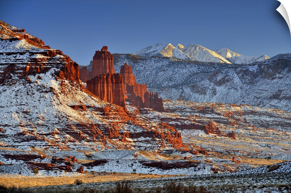 <p>Castle Valley and La Sal Mountains in winter near sunset, Colordao Riverway Recreation Area, Utah, USA</p>