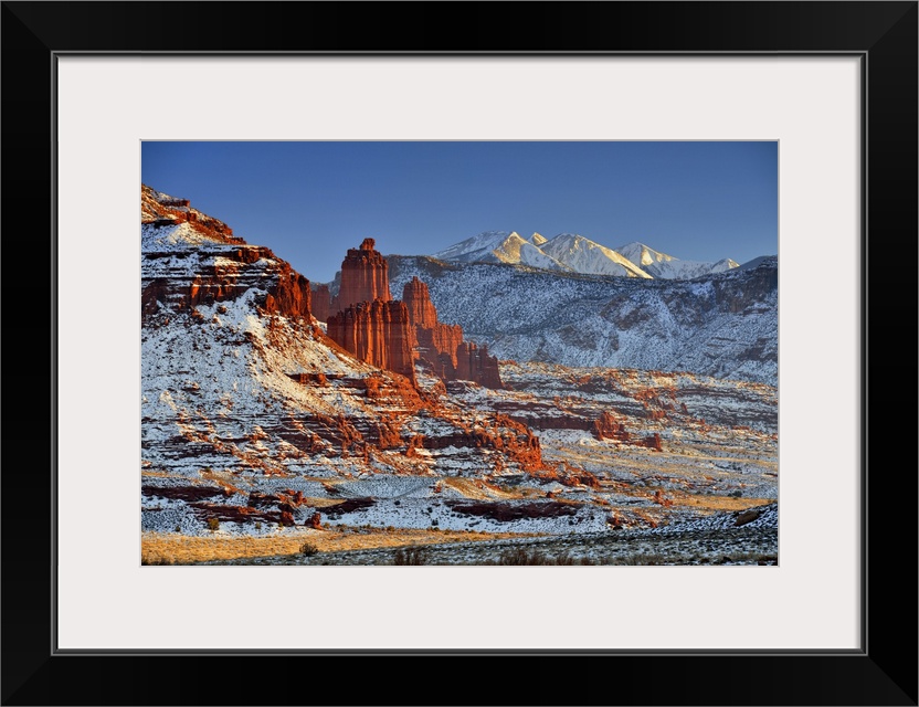 <p>Castle Valley and La Sal Mountains in winter near sunset, Colordao Riverway Recreation Area, Utah, USA</p>
