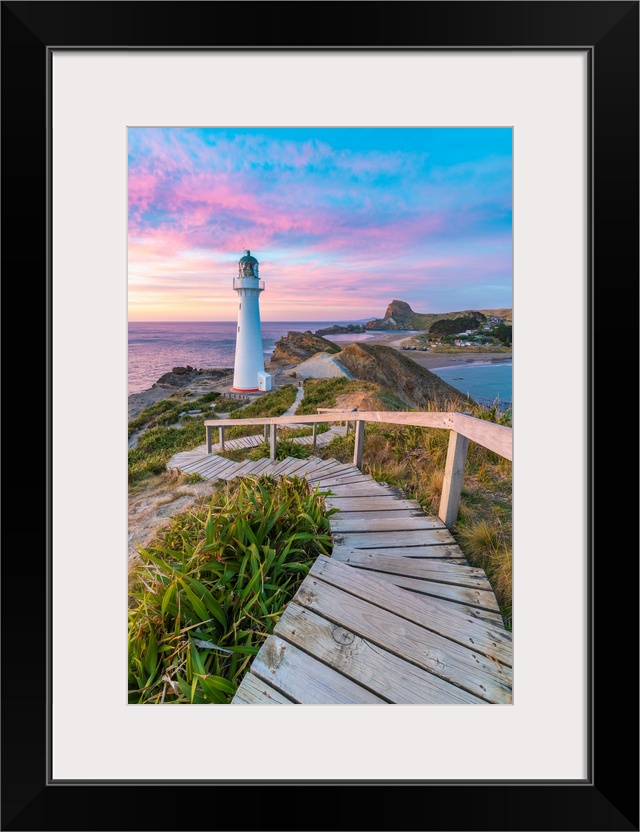 <p>Castlepoint lighthouse at dawn. Castlepoint, Wairarapa region, North Island, New Zealand.</p>