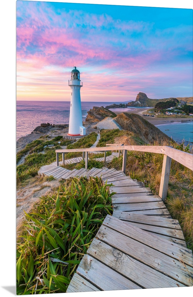 <p>Castlepoint lighthouse at dawn. Castlepoint, Wairarapa region, North Island, New Zealand.</p>