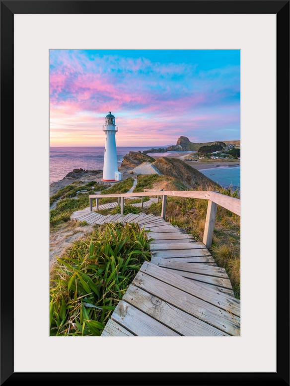 <p>Castlepoint lighthouse at dawn. Castlepoint, Wairarapa region, North Island, New Zealand.</p>