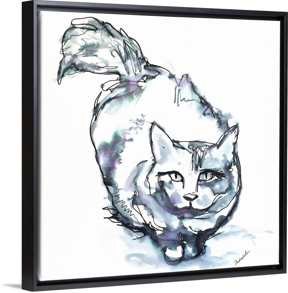 Art Contemporary Art Drawing Grey Wall Art Painting Kendra Shedenhelm Watercolor Wildlife Cat