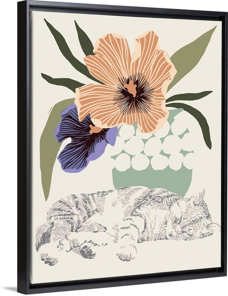Art Hannah Beisang Plants and Flowers Wildlife Decorative Art Florals Tulip Graphic Art She Shed Décor Wildlife Cat