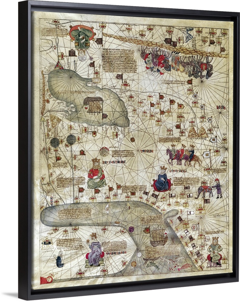 <p>CRESQUES, Jafuda (1350-1410); CRESQUES, Abraham ( -1381). Catalan Atlas. 1375. Fifth Leaf. Map of Delli. There are represented: the Aral Sea, the Volga river, the Caspian Sea, the Caucasus, the Euphrates river, the Arabian Peninsula and the cities of Delh</p>