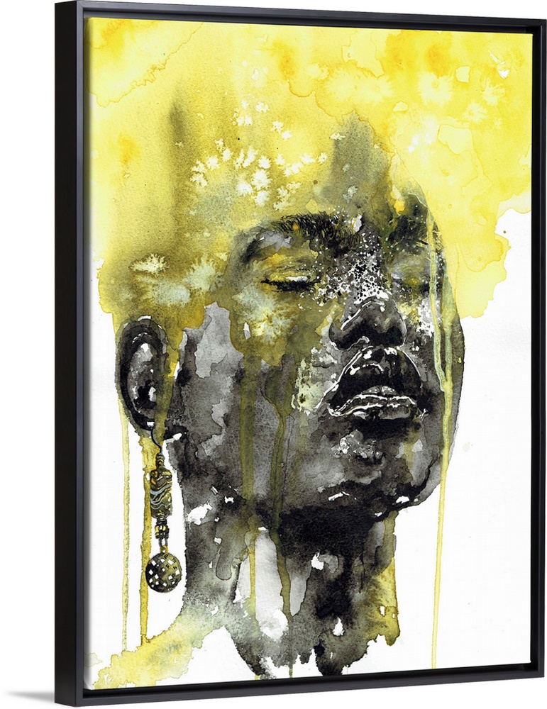 African-American Art Figurative Afrofuturism Wall Art Art Contemporary and Modern Contemporary Art Figurative Curated Collections New Portraits Spring Forward The Beauty Buff Pride Nyasha Painting People Portraits Watercolor Yellow Wall Art Lemon Yellow