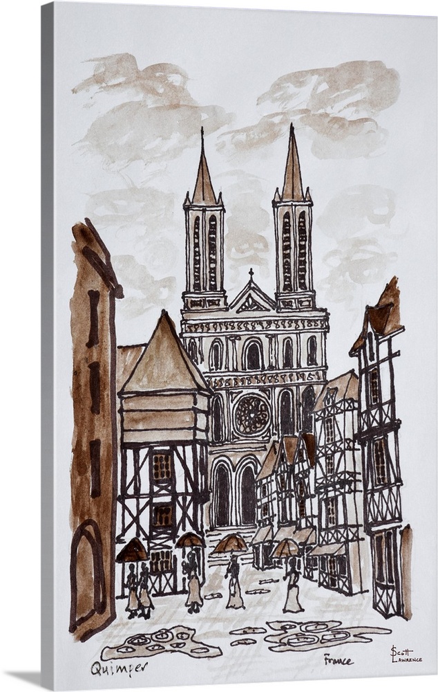 Cathedral and Norman styled Half-Timbered houses, Quimper, France