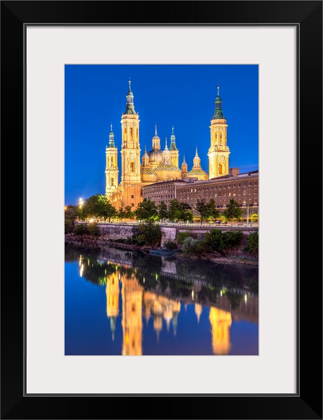 <p>Cathedral-Basilica of Our Lady of the Pillar or Catedral-Basilica de Nuestra Senora del Pilar viewed from across the Ebro river, Zaragoza, Aragon, Spain.</p>