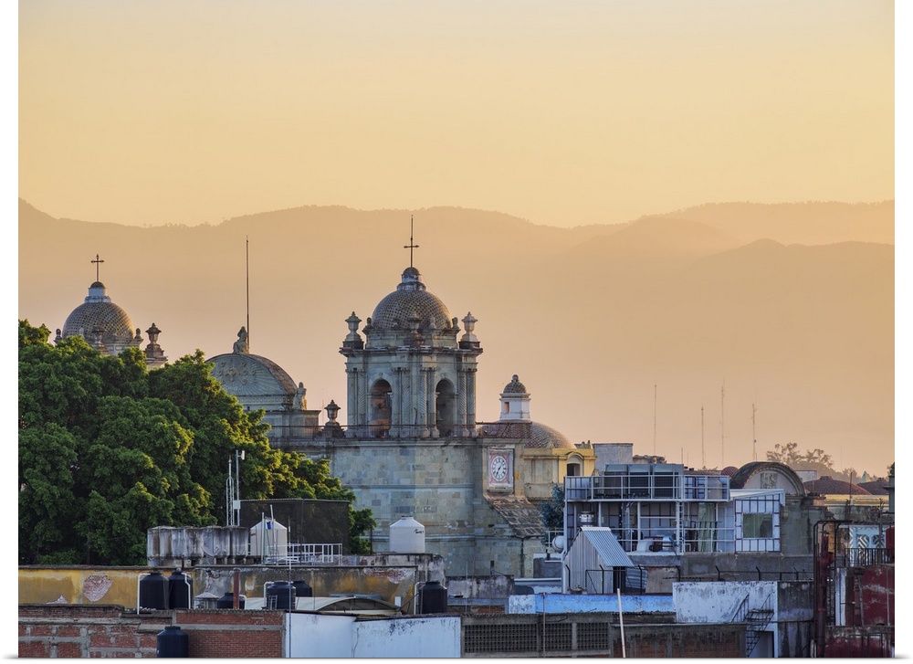 <p>View towards the Cathedral of Our Lady of the Assumption at sunrise, Oaxaca de Juarez, Oaxaca State, Mexico</p>