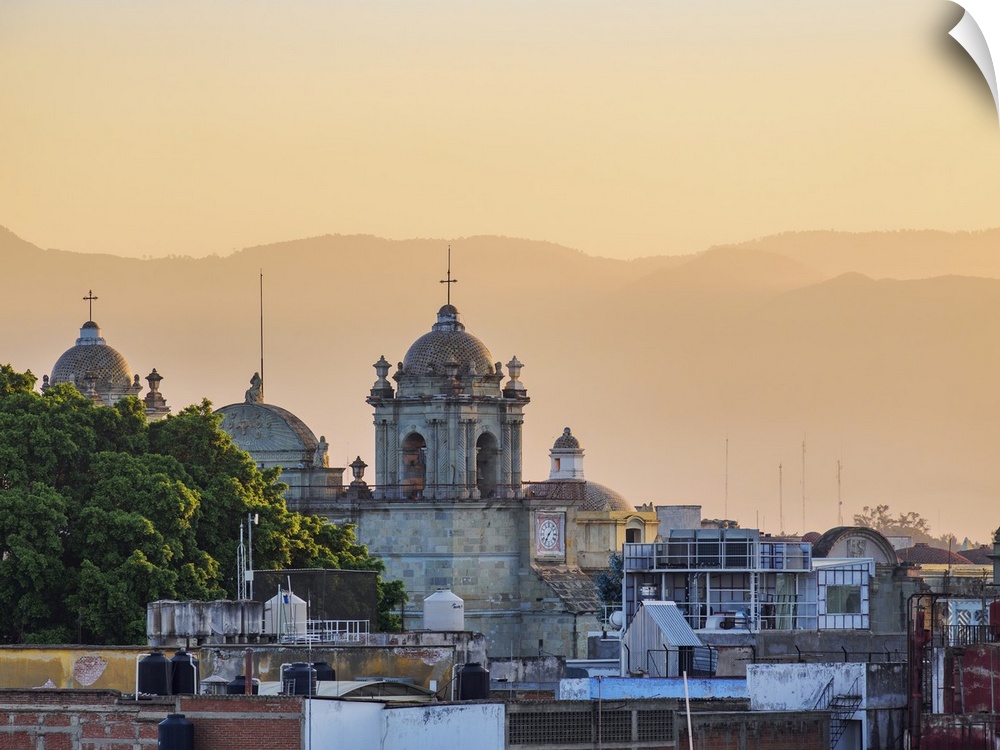 <p>View towards the Cathedral of Our Lady of the Assumption at sunrise, Oaxaca de Juarez, Oaxaca State, Mexico</p>