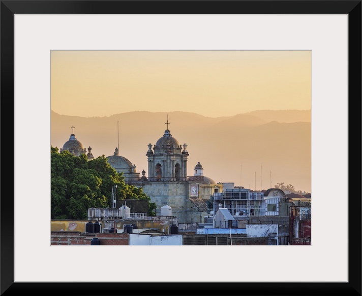 <p>View towards the Cathedral of Our Lady of the Assumption at sunrise, Oaxaca de Juarez, Oaxaca State, Mexico</p>