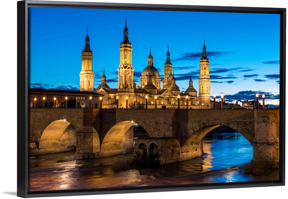 <p>Cathedral Of Our Lady Of The Pillar And Stone Bridge At Dusk. Zaragoza, Aragon, Spain</p>