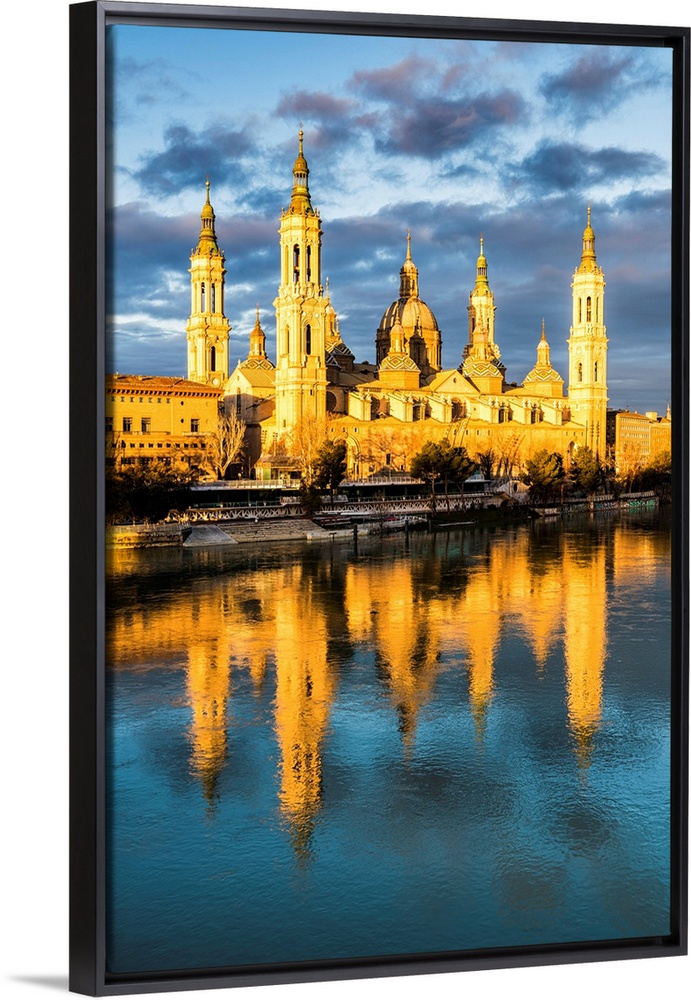 <p>Cathedral Of Our Lady Of The Pillar Reflected In Ebro River At Sunrise. Zaragoza, Aragon, Spain</p>