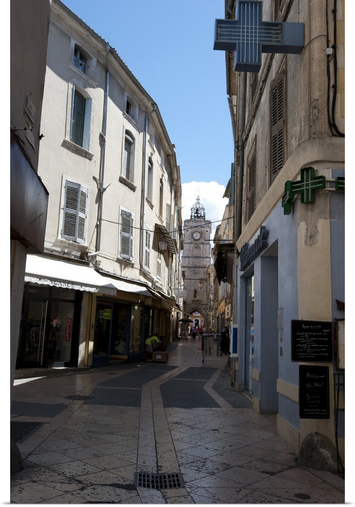 <p>Buildings along a pedestrian street, Cathedrale Ste-Anne, Apt, Luberon, Vaucluse, Provence-Alpes-Cote d'Azur, France</p>