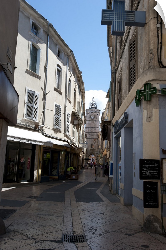 <p>Buildings along a pedestrian street, Cathedrale Ste-Anne, Apt, Luberon, Vaucluse, Provence-Alpes-Cote d'Azur, France</p>