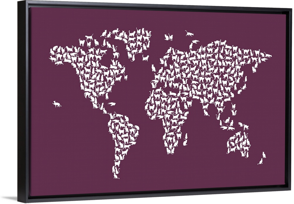 <p>A map of the world made from silhouettes of cats.</p>