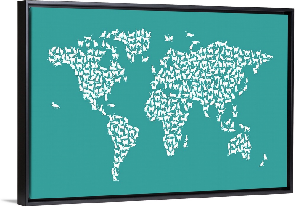 <p>A map of the world made from silhouettes of cats.</p>