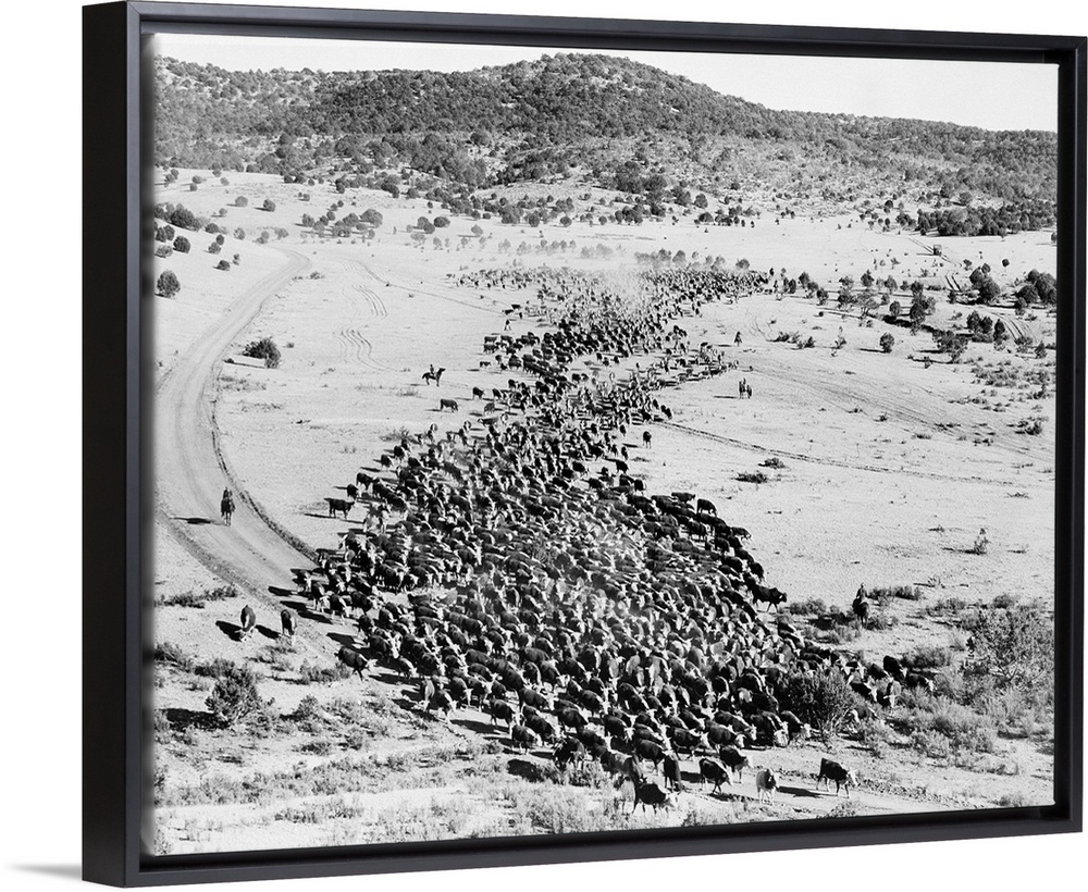 <p>A cattle drive on the Three-V Ranch owned by Arizona cattle baron, Marcus Rudnick. It was one of the few big open range country ranches left in the old west.</p>