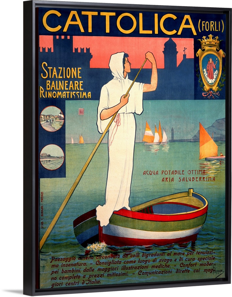 <p>A woman in white is rowing on the Adriatic Sea, as the image refers to Cattolica, a famous Italian seaside resort. Here you can find good water to drink, you can have fun and feel comfortable at very low costs. Cattolica is also famous for its special treatments for children.</p>