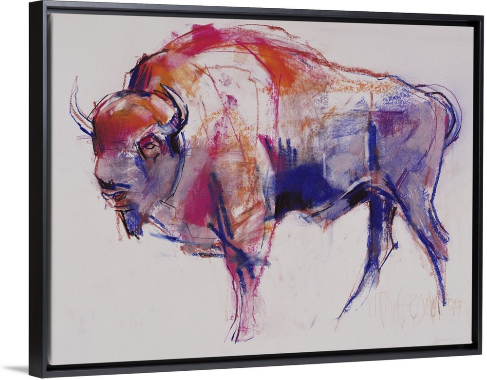 Mark Adlington Art Contemporary Art Wildlife Drawing Purple Wall Art Wildlife Bison and Buffalo