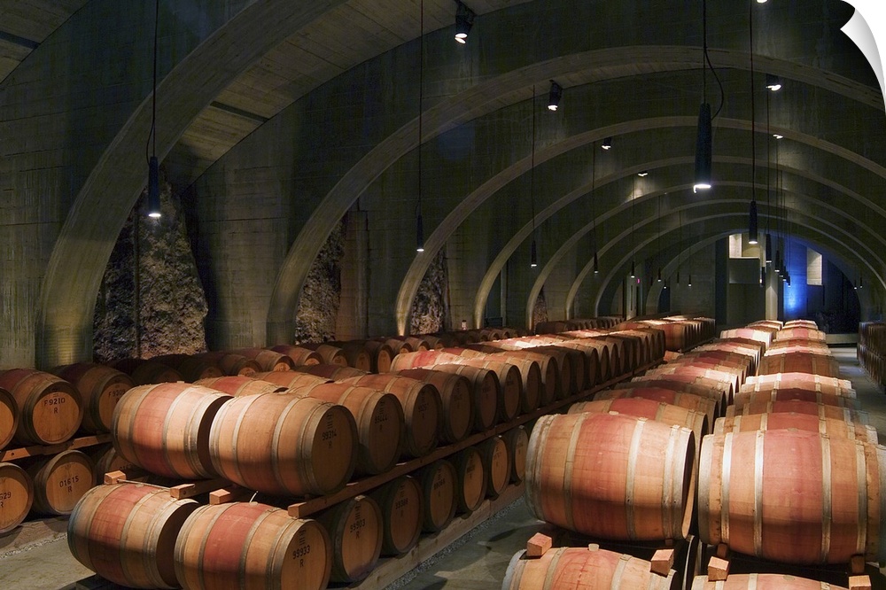 <p>Concrete Roman arches support the ceiling in the cave barrel cellar of Mission Hill Family Estate Winery in Kelona, BC, Okanagan, Canada.</p>