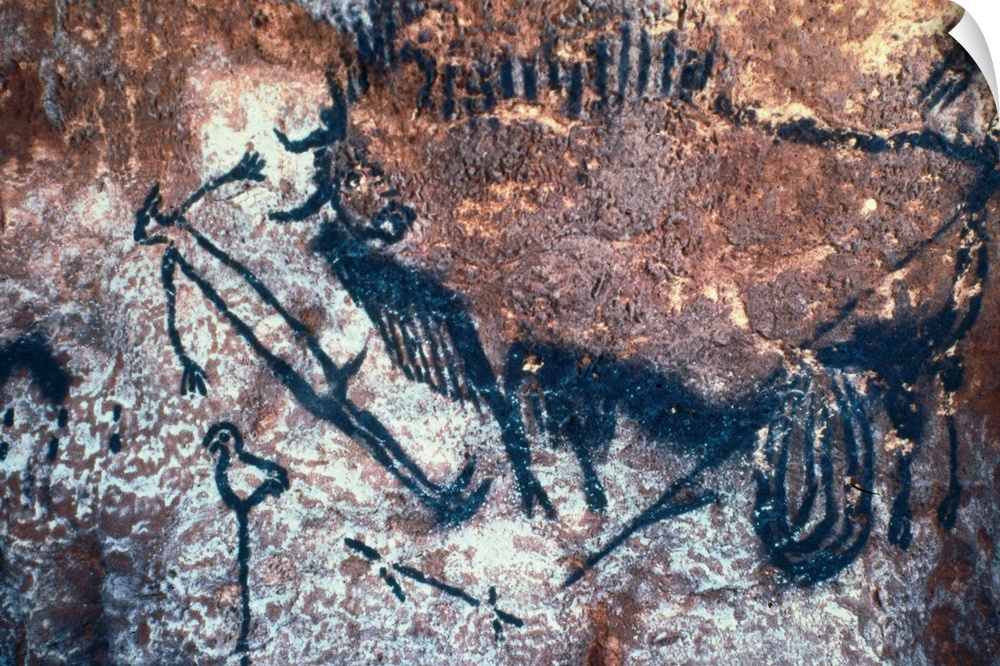 <p>FRANCE. Montignac. The Cave of Lascaux. Fighting scene between men and bisons (c.17000-15000 BC). Upper Paleolithic. Magdalenian. Cave. -</p>