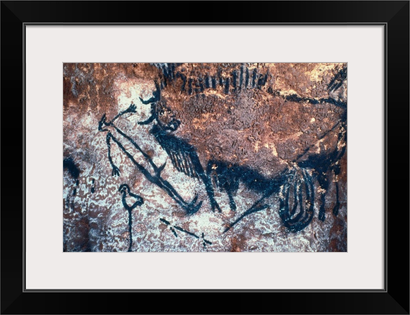 <p>FRANCE. Montignac. The Cave of Lascaux. Fighting scene between men and bisons (c.17000-15000 BC). Upper Paleolithic. Magdalenian. Cave. -</p>