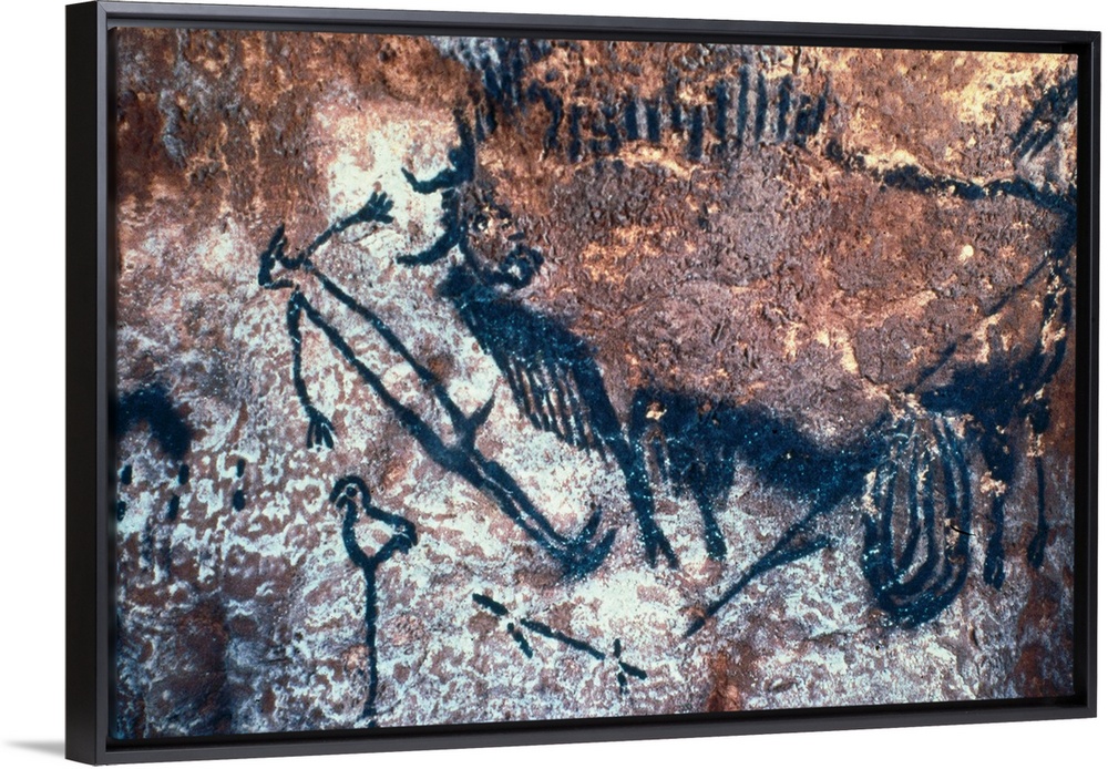 <p>FRANCE. Montignac. The Cave of Lascaux. Fighting scene between men and bisons (c.17000-15000 BC). Upper Paleolithic. Magdalenian. Cave. -</p>